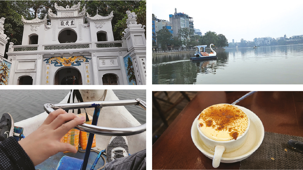 再往南走數分鐘,便是西湖的姊妹湖竹帛湖。走過幾排竹棚後有一間咖啡屋,不少旅客會一邊喝杯越南滑蛋咖啡,一邊賞湖;也有不少訪客(尤其是家庭及情侶)會到一旁的船屋租下天鵝狀的腳踏艇泛舟遊湖。我與小兒便租了一隻,湖景比不上西湖,重點是能一享父子同舟之樂,代價是我倆也成為了蚊子的點心。