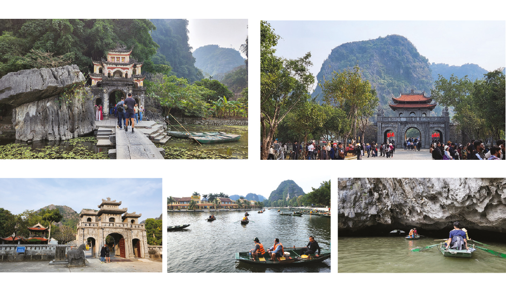 告別海上美景,寧平則是另一場精彩的海陸探索。這裡擁有如詩如畫的田園風光,從河內出發,沿途綠意盎然,車外美景令人心曠神怡。先到古都華閭,這個千多年前丁朝與黎朝的建都之地,至今仍保留皇宮遺址與石門,述說越南封建王朝的輝煌往事。登上山丘遠望,古城的紅瓦與青山交織,彷彿一幅歷史畫卷;眼前景色遼闊而壯麗,讓人不禁讚嘆昔日帝王的選址之妙。