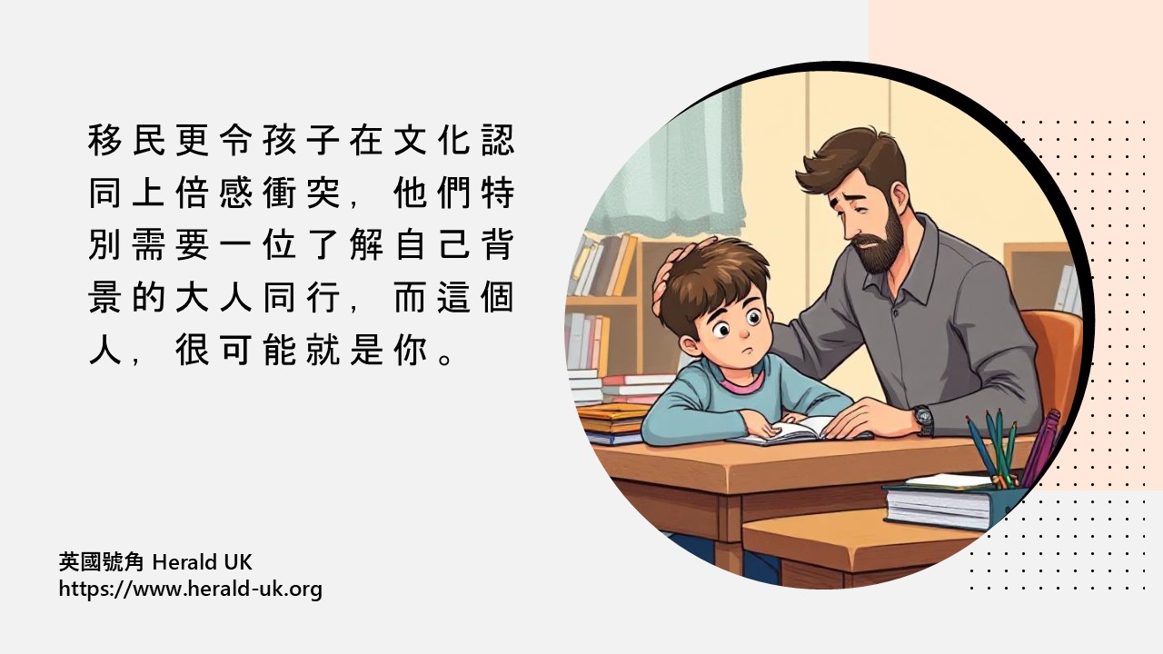 孩子移英後,你是否察覺到他的變化?他的廣東話變得彆扭,興趣與習慣也逐漸本地化。你欣慰他融入新生活,卻也發現他常與你爭辯,抱怨你不懂他的世界。你曾否埋怨孩子與你變得疏離?