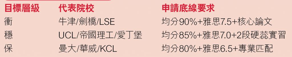 結合背景、GPA、興趣、職業方向制定選校清單;科學組合衝刺+穩+保底,別盲目只看QS排名,明確專業匹配度,避免背景不符被拒